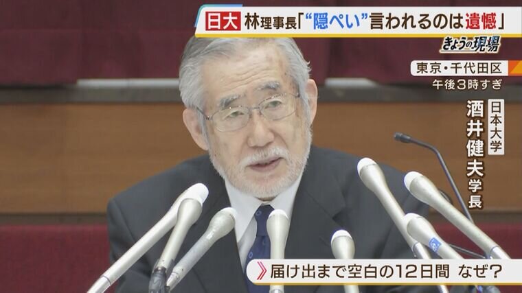 (日本大学 酒井健夫学長)「不審物を発見した時点では違法な薬物であるとの確証がなく、ヒアリング調査を進めてからまとめて警察に相談しようと考えていました」