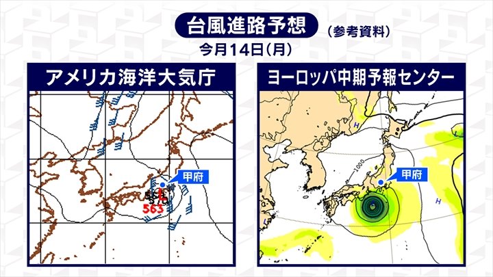 ただ山梨に影響があるとするならば、14日来週の月曜日以降ということになります。