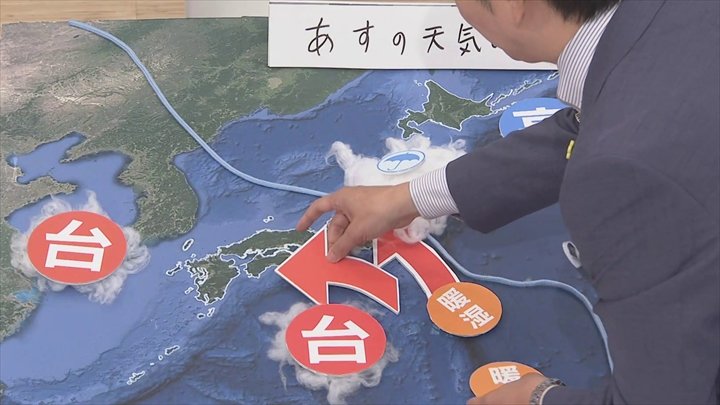 これによりダブルで湿った空気が入ってきたのできょうの雨となりましたが、あすはこの台風がやや少し動く予想となっています。