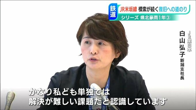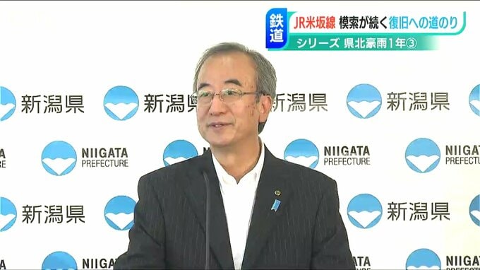新潟県の花角知事は、JR、国、地元自治体で費用を分担する国の災害復旧制度に触れ、JRの費用負担が減るよう国に見直しを求めています。