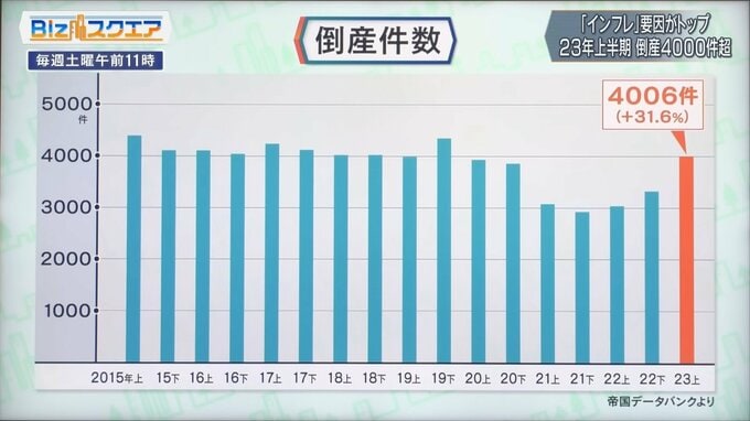 今、実は景気が良くなっている割には倒産が増えている。2023年1月から6月までの倒産件数は4006件で、上半期に4000件を超えるのは5年ぶりだ。
