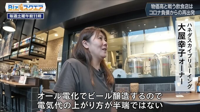 羽田空港の国際線ターミナルから1駅。京急空港線の天空橋駅に直結する大規模複合施設に店を構える「ハネダスカイブリューイング」は、店内醸造のクラフトビールとピザが売りのブリュワリーレストランだ。複合施設には企業のオフィス、ホテルにイベントホールが併設され、集客には最高の立地だ。今後売り上げが伸びていく中、代表の大屋幸子氏が一番心配するのはひと月100万円近く払うという電気代だ。