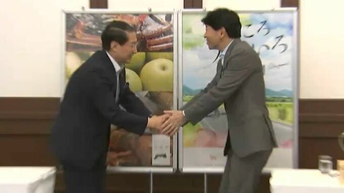 岡山県と鳥取県の両知事が美作市で意見交換です。人口減少対策や観光連携などについて意見を交わす「知事会議」が行われました。「やー!」岡山・鳥取両県知事会議は毎年行われているもので、今回で16回目を迎えま…