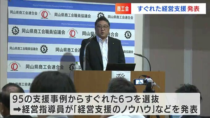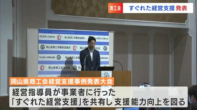 岡山県の商工会が県内の事業者に行った、優れた経営支援の事例を発表する大会が岡山市中区で開かれました。