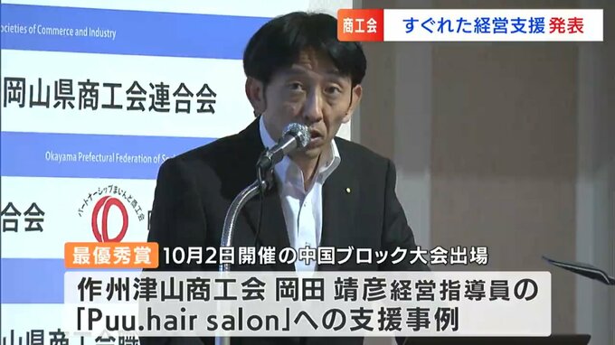 最優秀賞には、作州津山商工会の岡田靖彦指導員が行った美容院オープンに向けた創業支援の事例が選ばれました。