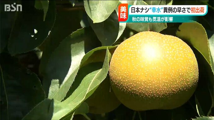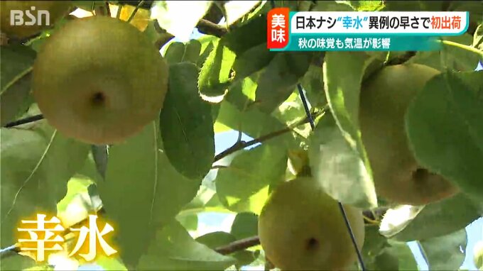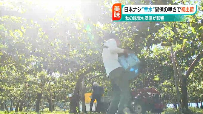 暑い日が続く中、“秋の味覚”が異例の早さで出荷です。日本ナシの「幸水」が高温で開花が早まったということで、例年より一週間ほど早く出荷が始まりました。