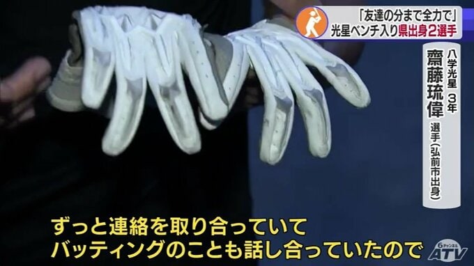 活躍を見せたい人として挙げたのが青森山田高校のショート川下大翔選手です。齋藤選手と川下選手は野球を始めた小学校の時のチームメ―ト。齋藤選手は県大会準決勝で青森山田を破った試合の後、川下選手からバッティンググローブを受け取りました。