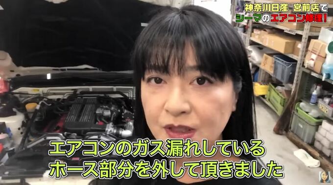 女優・伊藤かずえさんが自身のYouTubeチャンネルに、「【愛車シーマを修理】エアコンガス漏れ原因のパーツを外しました!」と題した動画をアップ。