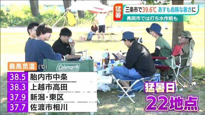最高気温は長岡市と上越市高田で39度、新潟市中央区で38度、佐渡市相川で36度と予想されています。