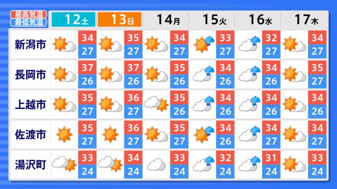 また、14日にかけては引き続き気温の高い日が続く見込みで、熱中症対策や農作物の管理に注意が必要です。