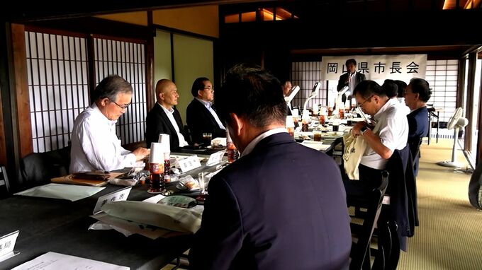 岡山県内の市長が政策などについて意見を交わす「岡山県市長会議」が美作市で開かれ、国の少子化対策に地方の意見の反映などを求める緊急要望を取りまとめました。岡山県市長会議は美作市の国指定重要文化財「林家…