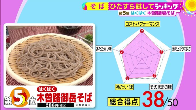 第5位は、はくばくの『木曽路御岳そば』(税込286円 ※番組調べ)。
