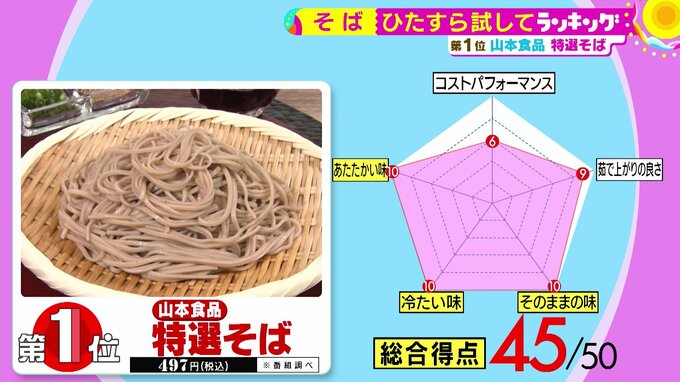 そして第1位は、山本食品の『特選そば』(税込497円 ※番組調べ)。