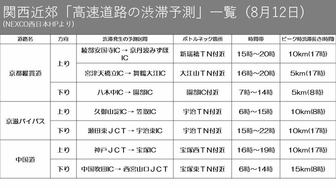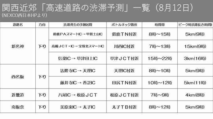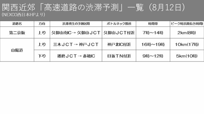 【お盆の渋滞】名神22km 山陽道21km 新名神21km 3連休の高速道路は帰省と行楽地へ向かう車列 毎日放送 2023年8月11日(金) 11:32 経済 暮らし・マネー 3連休の渋滞予測 Uターンのピークはいつ(日付・路線別)12日