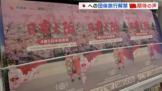 中国政府がきのう、日本などへの団体旅行を解禁したことを受け、中国国内からも期待の声があがっています。記者「こちら北京の空港です。これから日本にツアー客が出発します」日本に向かう人「徳島県に阿波おどり…