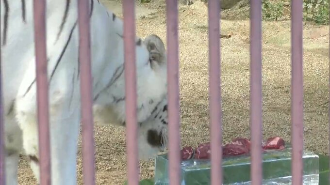 そんな中、動物たちに氷をプレゼントするイベントが行われました。