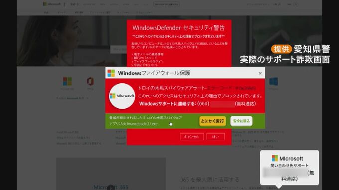 名古屋駅近くの家電量販店で、警察がサポート詐欺への注意を呼びかけました。 パソコン画面に突然現れた警告表示。警告音も鳴り響く中、パソコンがウイルスに感染したとして、サポートに電話をかけるよう要求しま…