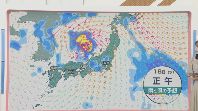 関東甲信など広い範囲で影響が14日から出そうですが、東海・北陸に関しては16日午前中まで影響が出るのではないか、雨風が強まって警戒が必要とみられているんですね。
