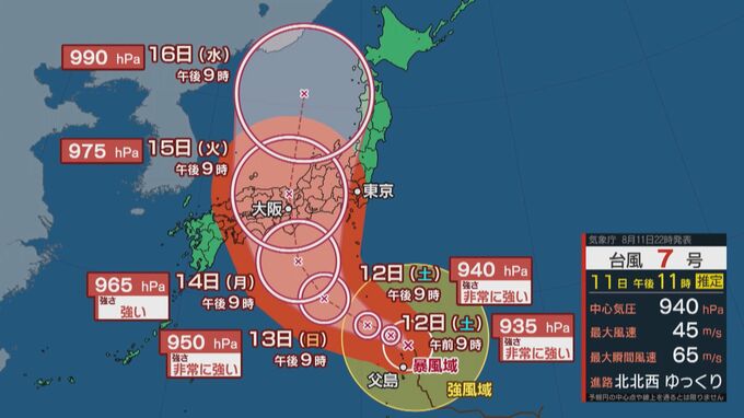 Uターンラッシュの交通に影響 台風7号 お盆に上陸か