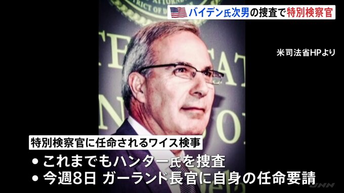 税金未納などの罪で訴追されたアメリカのバイデン大統領の次男・ハンター氏の捜査をめぐり、司法省は特別検察官を任命すると発表しました。アメリカのガーランド司法長官は11日、税金未納などの罪で訴追されたバイ…