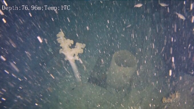 常陸丸が見つかったのは、その福岡県玄界灘、世界遺産沖ノ島付近の海域。漁場の関係により詳しい場所は言えない。BS-TBSの特別番組「幻の海底遺産を探せ!~水中ドローンで大捜索~」の取材班が、調査会社に依頼。海底をソナー調べたところ、長さ134mの巨大なふくらみを見つけ、今年5月特別な許可を得て水中ドローンで捜索を始めたのだ。