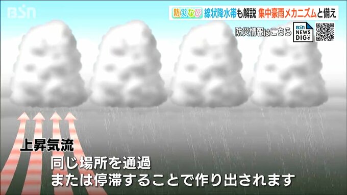 「線状降水帯とは、積乱雲が列をなして“組織化”した積乱雲が数時間、同じ場所を通過、または停滞することで作り出されます」
