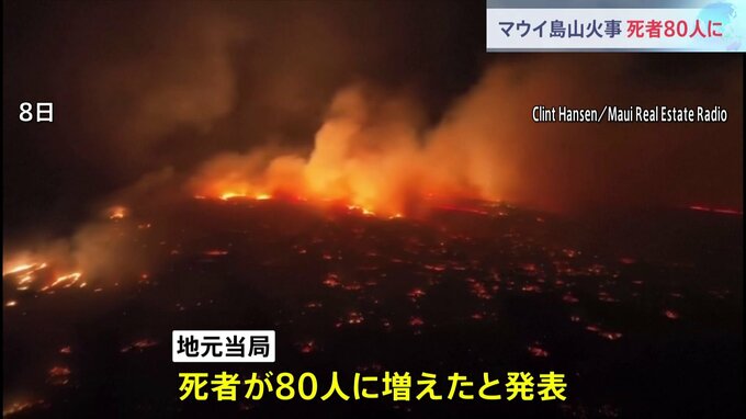 ハワイのマウイ島で発生した山火事の犠牲者はさらに増え、80人になりました。被害のあった地域に住民らが初めて立ち入りましたが、直後に再び閉鎖される事態となっています。記者「こちら、被害の深刻だったラハイ…