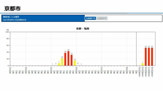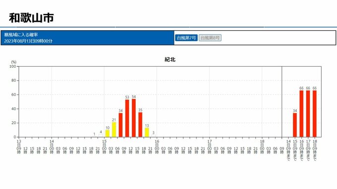 いつ・どこが暴風域に? 台風7号 “最接近”いつ? 15日に本州 “縦断”お盆Uターン影響大 気象庁進路予想 中国放送 2023年8月13日(日) 11:53 国内 天気 近畿地方(13日午前9時発表) 最接近は和歌山や奈良らでは15日(火)昼前後、大阪や京都などは15日(火)午後と予想されています。