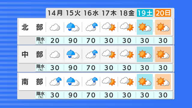 台風は7号は15日に四国から東海にかなり接近、または上陸するおそれがあります。海上は大しけとなり、14日から15日ごろにかけて、東日本から西日本太平洋側を中心に大雨となる所がある見込みで、気象庁が土砂災害や河川の氾濫などに厳重な警戒を呼びかけています。