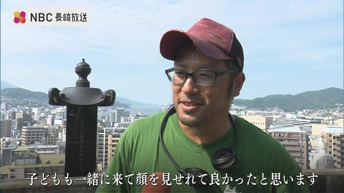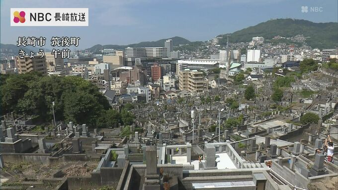 街を見下ろす斜面地にある長崎市筑後町の墓地にも、早朝から多くの家族連れなどが墓参りに訪れていました。親戚10人で訪れた家族は、みんなで墓を掃除したあと、先祖の墓前に花や線香を手向け手を合わせていました。