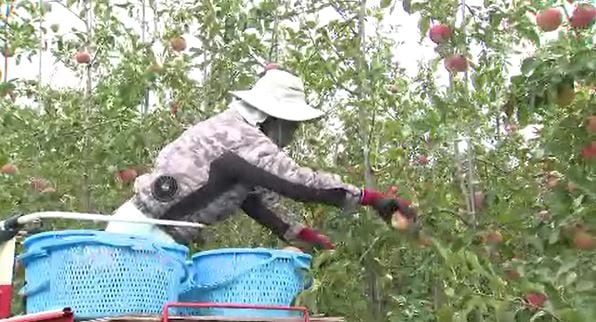 リンゴの早生種「シナノリップ」の収穫が最盛期を迎えている安曇野市では、台風7号の接近に備えて、農家が収穫作業に追われていました。鶴見静江(つるみ・しずえ)さん: …
