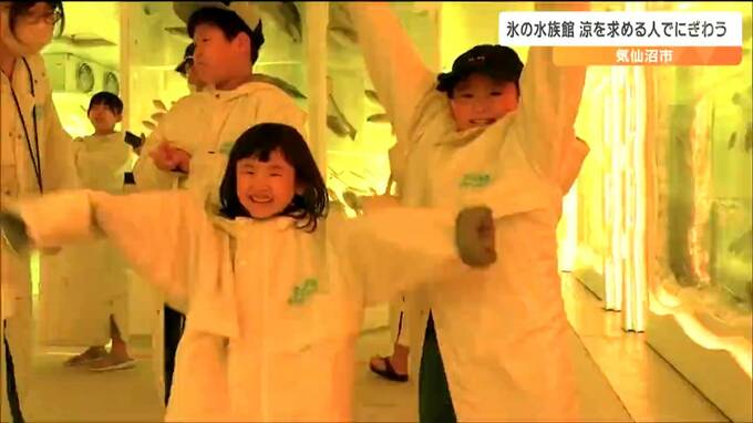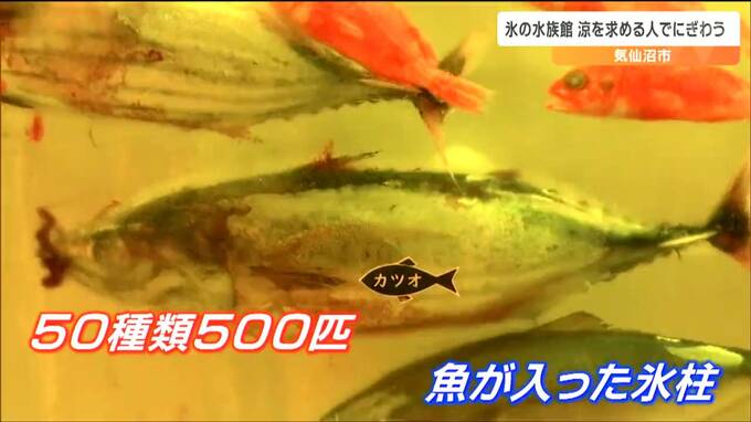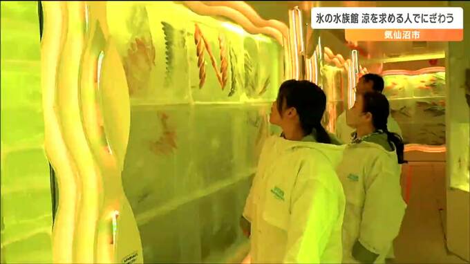 連日の暑さにより魚を氷の中で展示する宮城県気仙沼市の「氷の水族館」は涼を求める人で賑わっています。