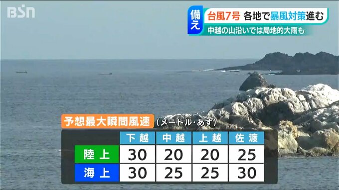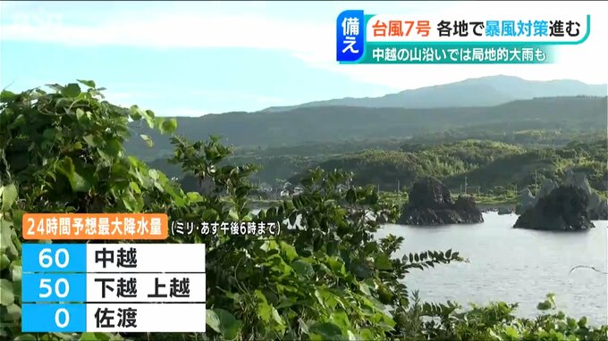 強い台風7号は15日午後から16日にかけて新潟県内に接近すると見込まれ、強風に注意・警戒が必要です。佐渡市では、漁師や農家が台風への備えを進めています。