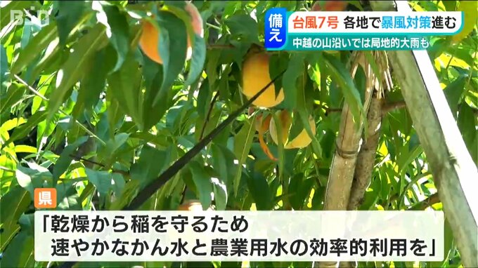 新潟地方気象台は強風に加え高温も予想されるため農作物の管理に十分注意するよう呼び掛けています。また新潟県は乾燥から稲を守るため、速やかなかん水と農業用水の効率的な利用を呼び掛けています。