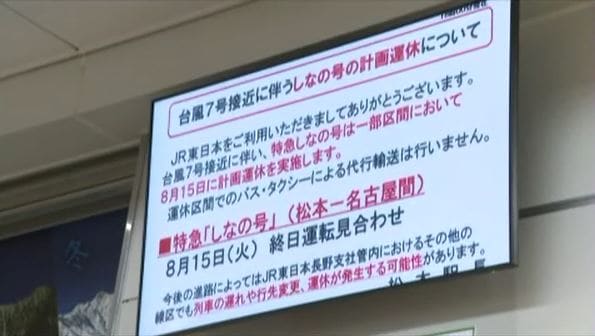 交通機関にも影響が出ています。JRによりますと特急「しなの」は15日、松本と名古屋の間で終日、計画運休となるほか、松本から北の区間でも一部が運休となります。松本駅の窓口では14日の朝から、切符の予約を変更…