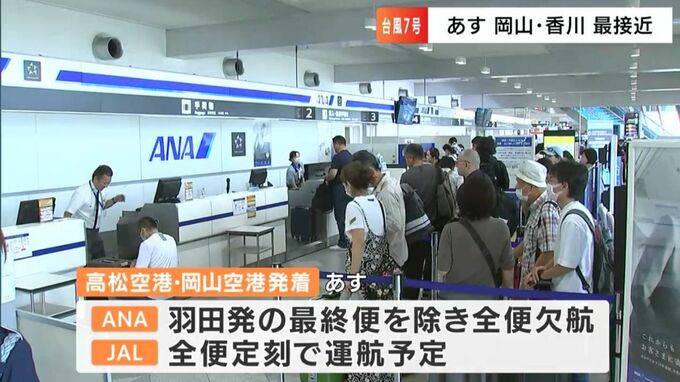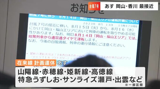 台風7号は、あす(15日)岡山・香川に最も近づくとみられていて、激しい雨や風に警戒が必要です。お盆のUターンラッシュに直撃する台風によって、各交通機関にも影響が出ています。