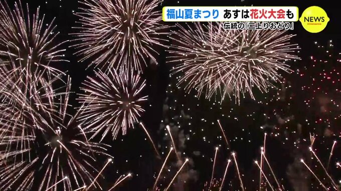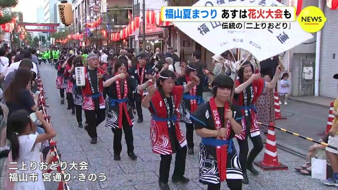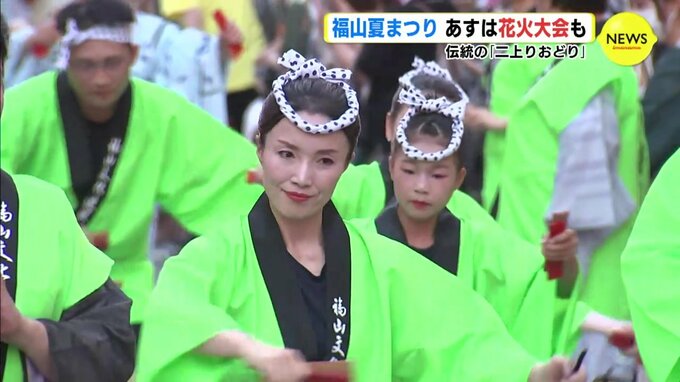 「福山夏まつり」(広島・福山市)が始まり、初日の13日は先祖供養の伝統の盆踊り「二上りおどり」が披露されました。最終日のあす15日は、「あしだ川花火大会」がフィナーレを飾ります。