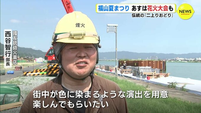 あしだ川花火大会は、4年前は台風でなくなり、2020年から3年間は新型コロナの影響で中止となっていました。5年ぶりとなることしは、西日本最長クラスとなる1.4キロの水上スターマインやパステルカラーの花火などおよそ1万6000発が福山の夜空を彩ります。