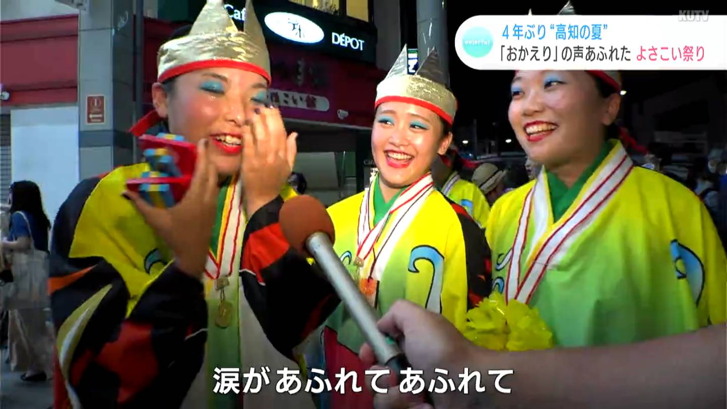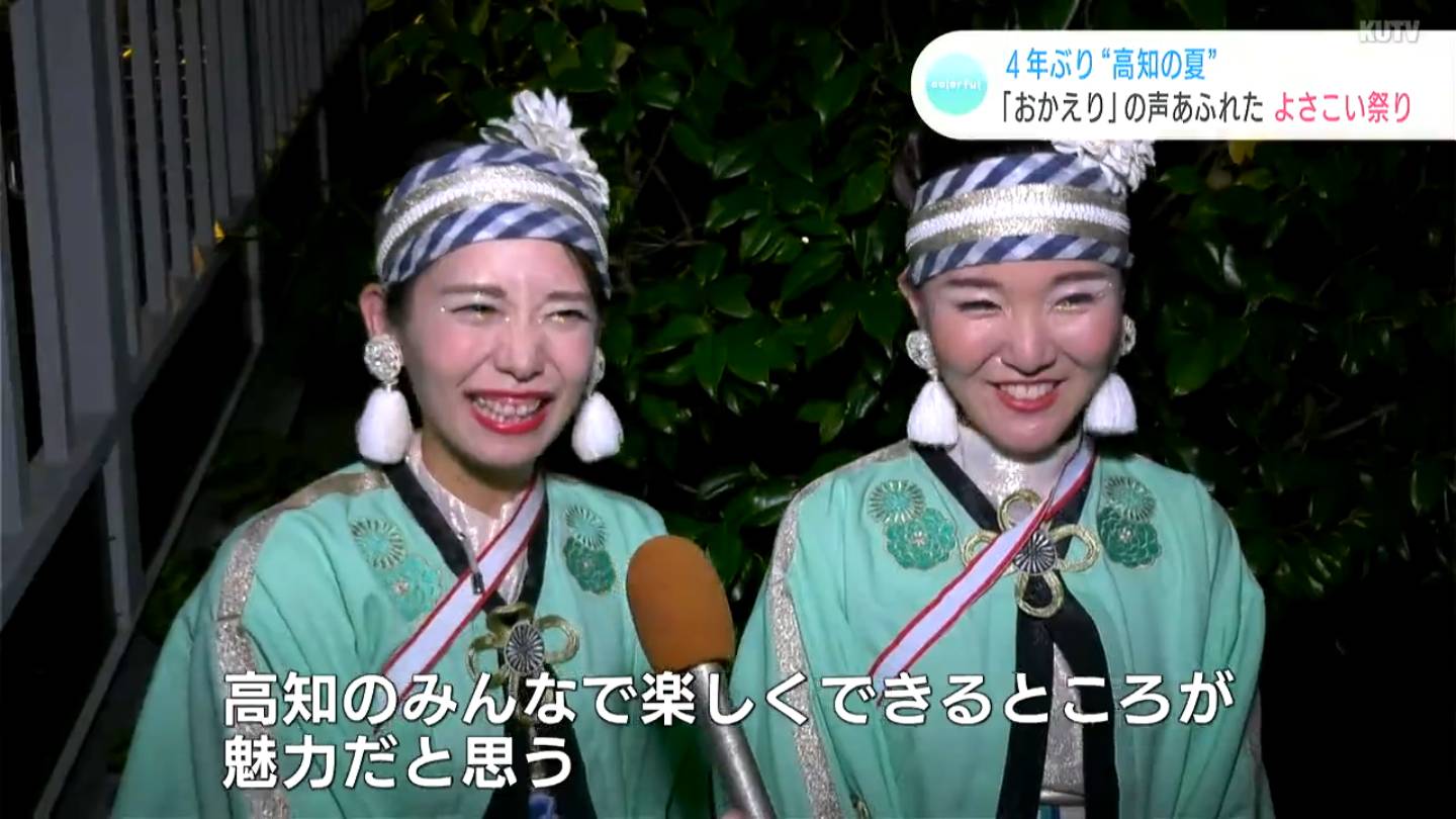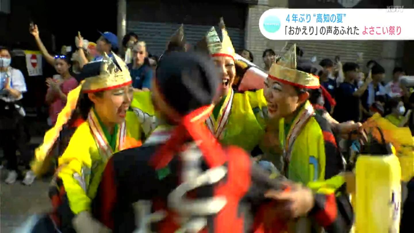 様々な人が待ち望んだ4年ぶりの「よさこいの夏」。たくさんの「おかえり」に迎えられながら踊り子たちは最高の瞬間を楽しみました。踊る人も見る人も支える人も、みんなが楽しんだよさこい祭り。高知の風物詩が再びスタートを切った夏でした。