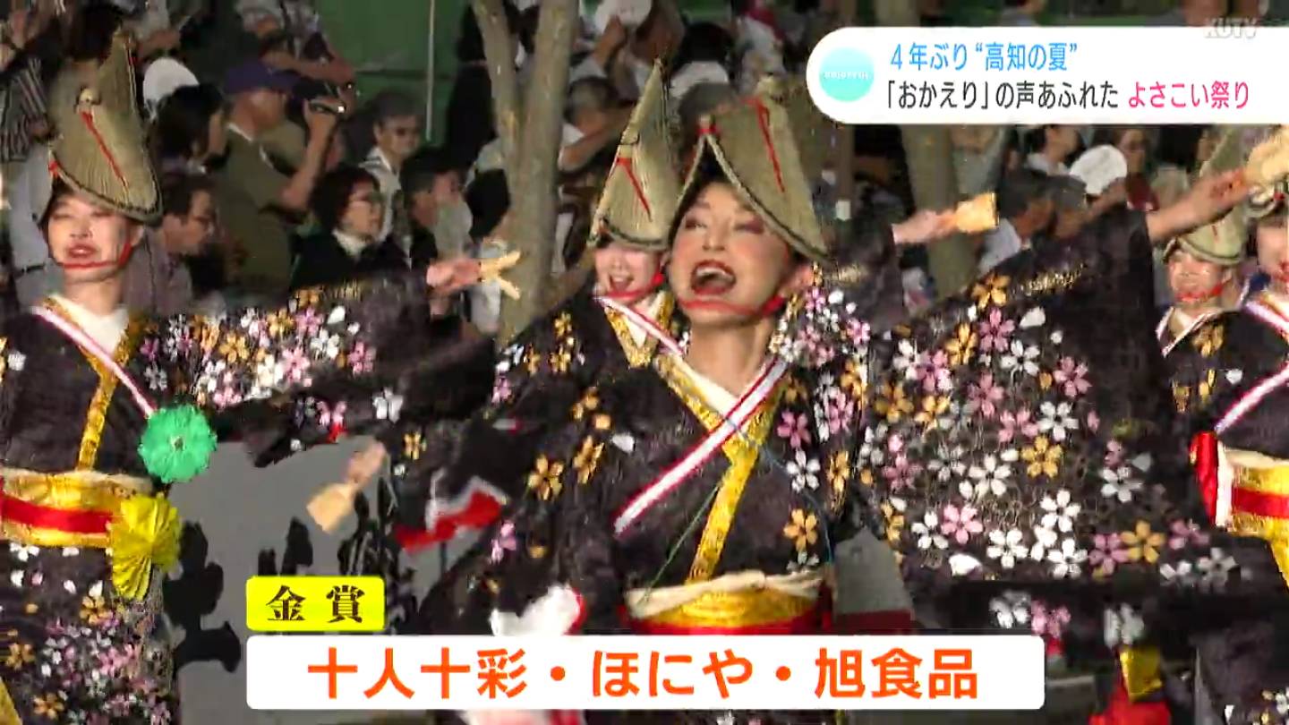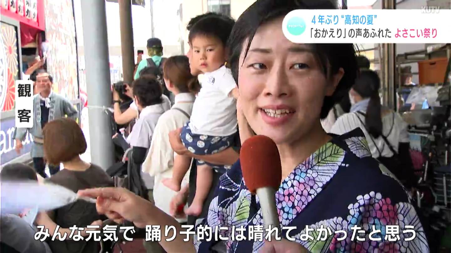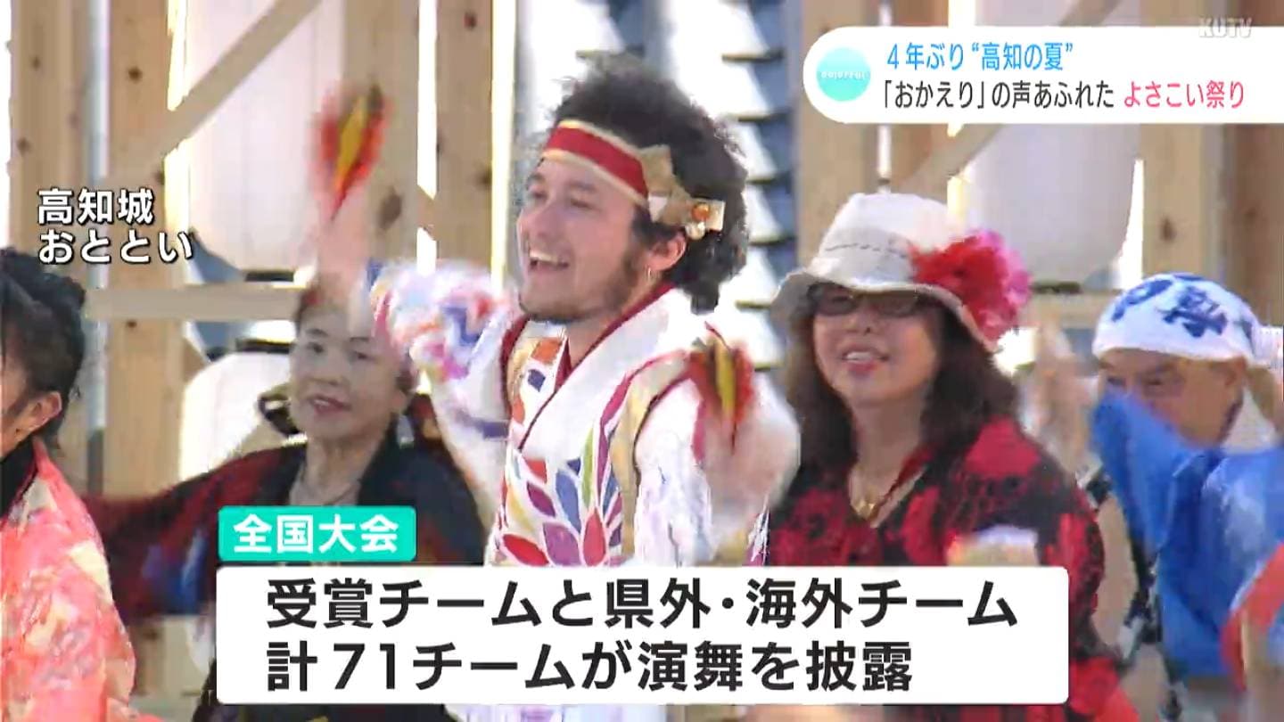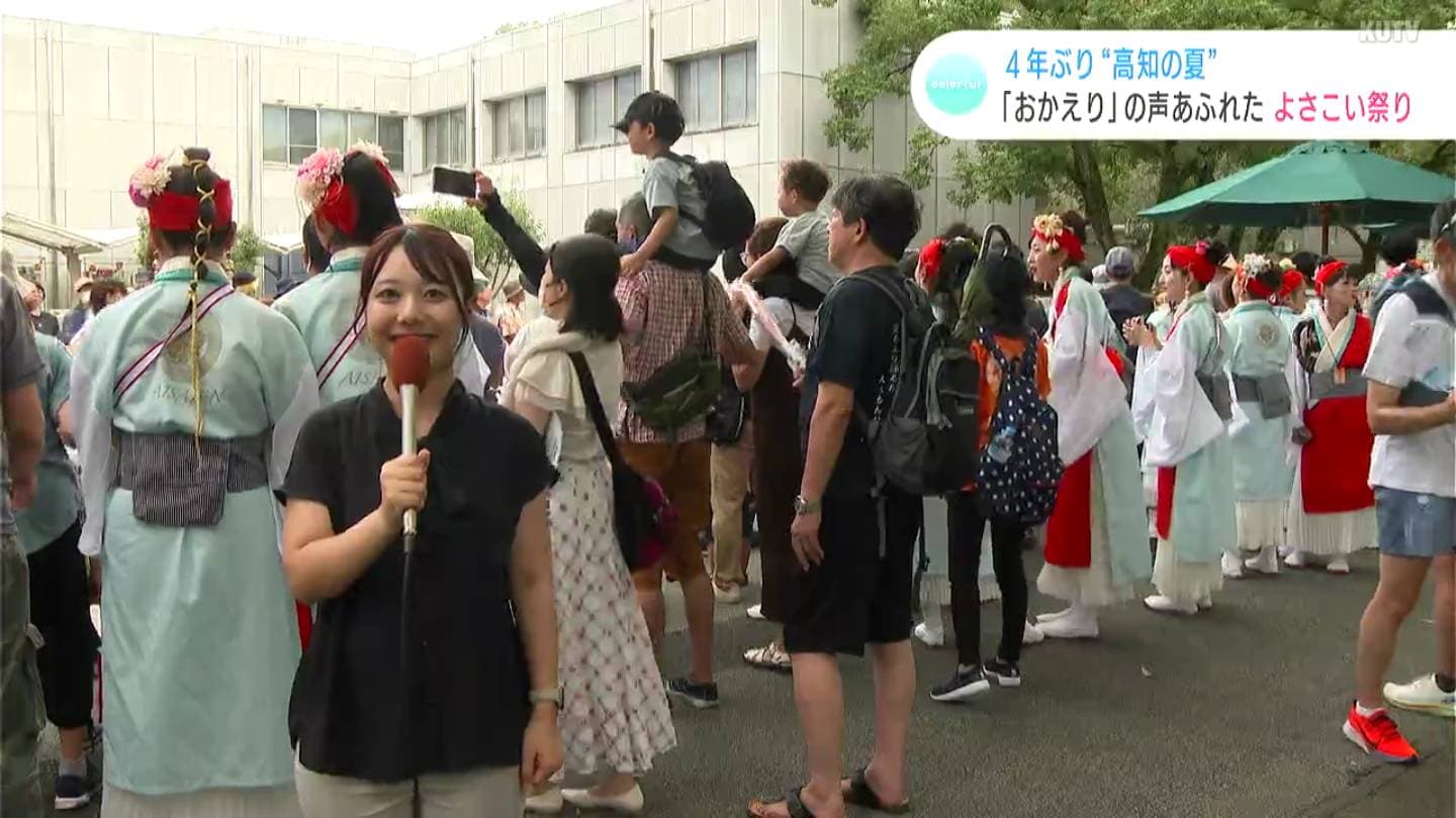 この日の高知市の最高気温は32℃。夏らしい天気の中、こちらも4年ぶりに復活した愛宕競演場では、踊り子たちが暑さを吹き飛ばすような踊りを披露し、「よさこいの夏」を満喫していました。