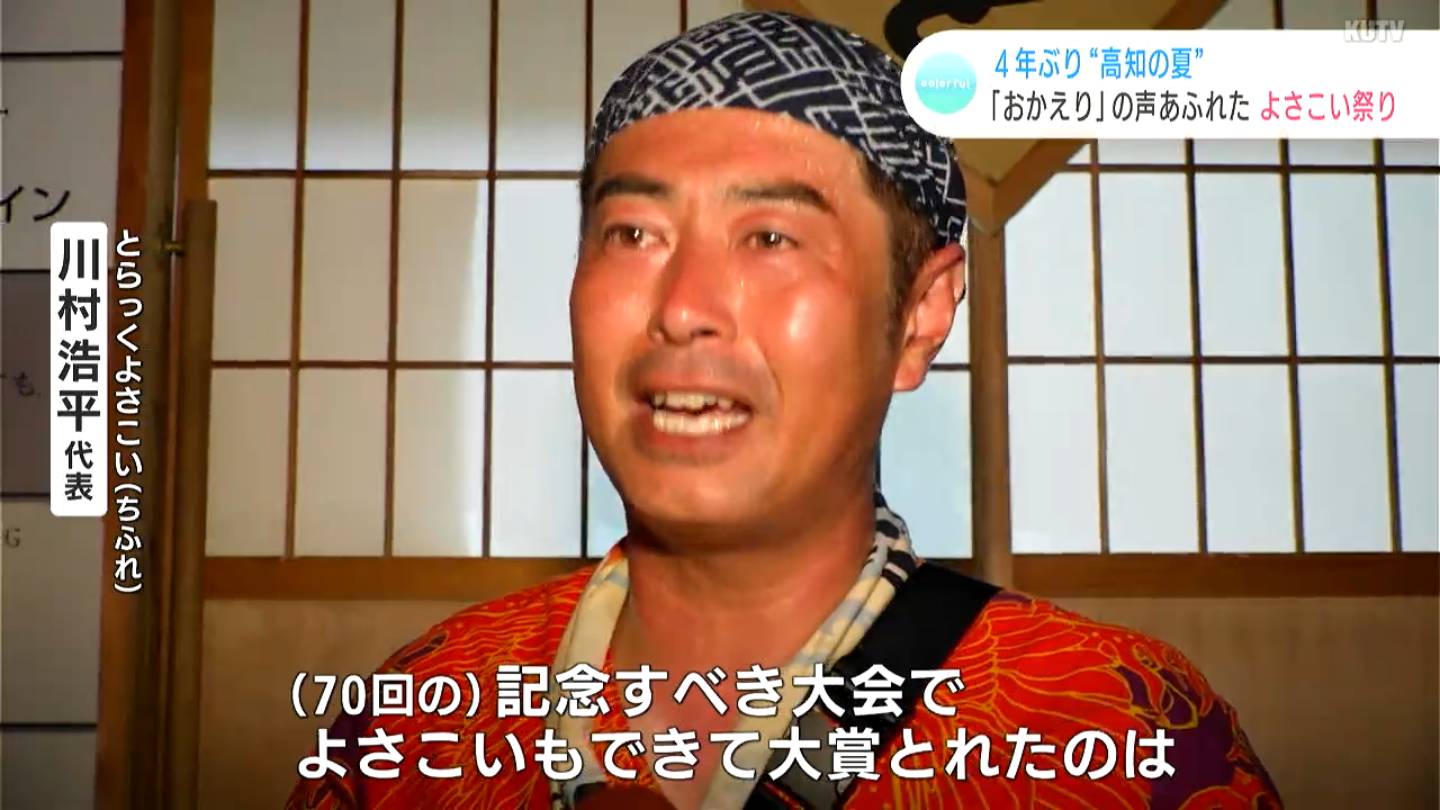 「(70回の)記念すべき大会で、よさこいもできて大賞とれたのは本当にうれしく、とらっくよさこいのファミリーと一緒に大賞をとれたのは本当に最高の思い出です」