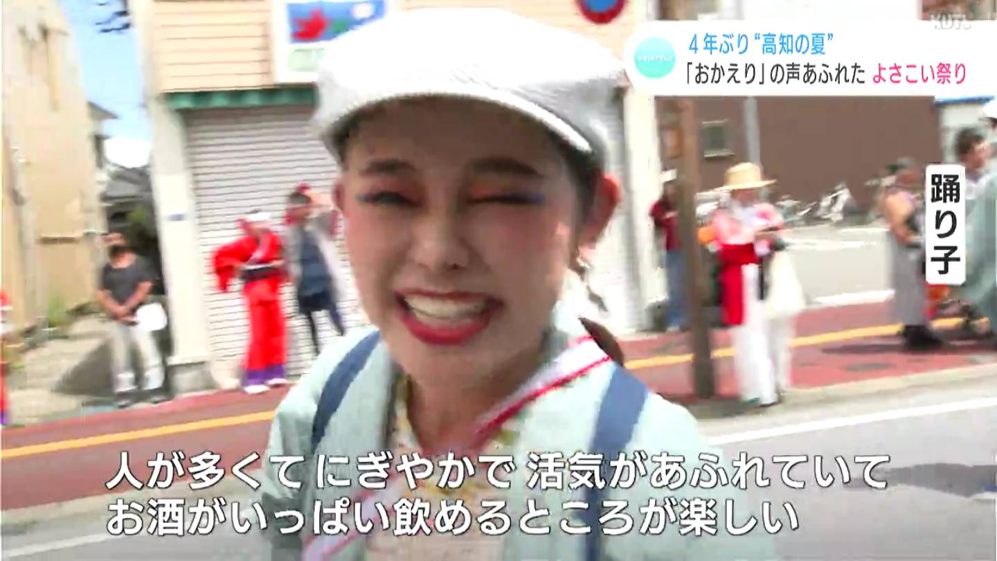 「一緒に声をかけてくれたり手拍子をしてくれたりというのがすごく元気になるし、一緒によさこいを楽しんでいるという感じが高知のみんなで楽しくできるところが魅力だと思う」