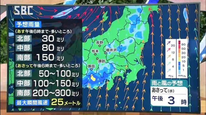 雨や風の予想: 14日夜以降、断続的に雨が降り、長野県の