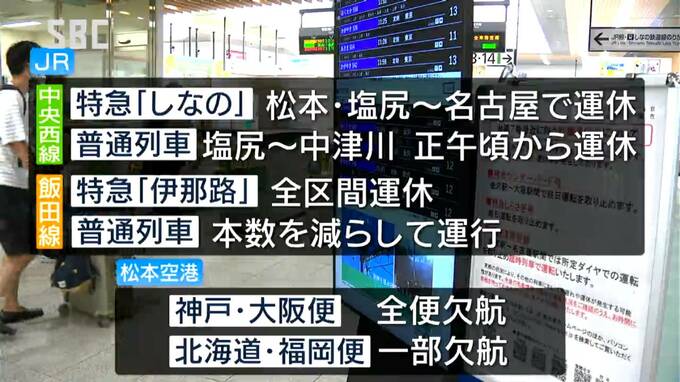 松本からの空の便は、神戸便と大阪便のすべてと札幌、福岡便の一部が欠航します。