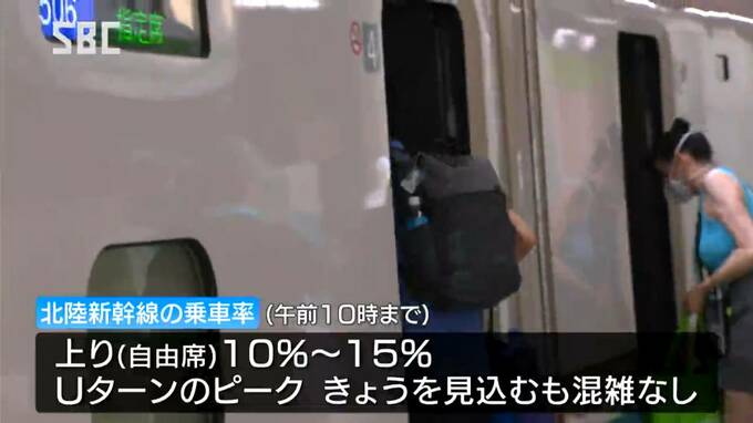 JRによりますと、Uターンのピークは15日を見込んでいましたが、午前10時までの北陸新幹線の上りの乗車率は10%から15%で、混雑はないということです。
