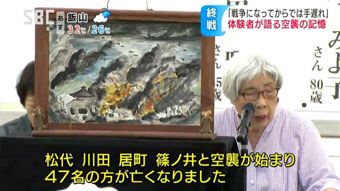 須坂市の碓井智以子さん84歳は、長野空襲の体験を紙芝居で語りました。