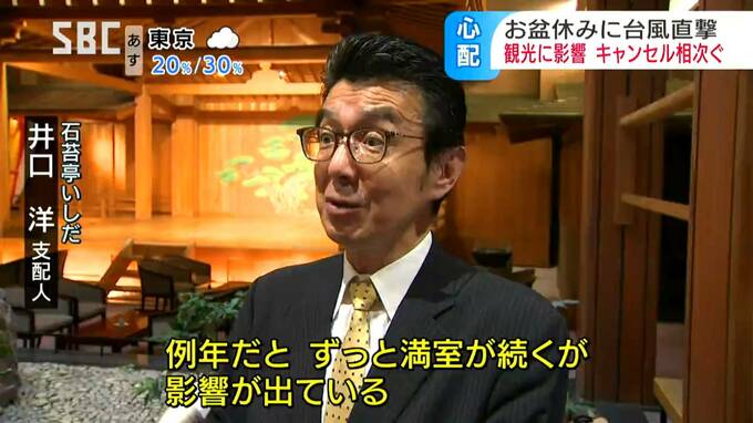 台風の進路となった中京や関西地方からの宿泊客が6割ほどを占めるため、今後さらに影響があるのでは、と心配しています。