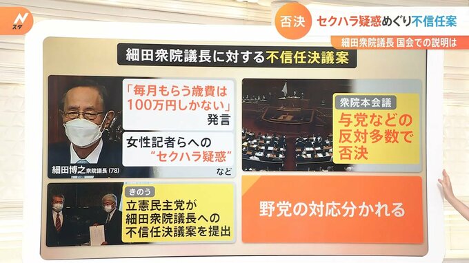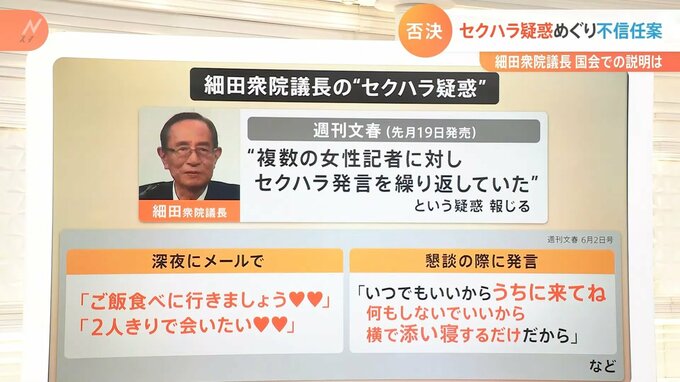 ■セクハラ疑惑めぐり不信任案も否決 細田衆院議長の説明は?