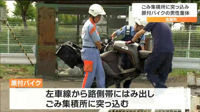 15日正午頃、宮城県名取市内の市道で、原付バイクがごみ集積所に突っ込みました。原付バイクを運転していた男性は意識不明の重体です。15日午前11時55分頃、名取市下余田の市道で、原付バイクがごみ集積所に突っ込…