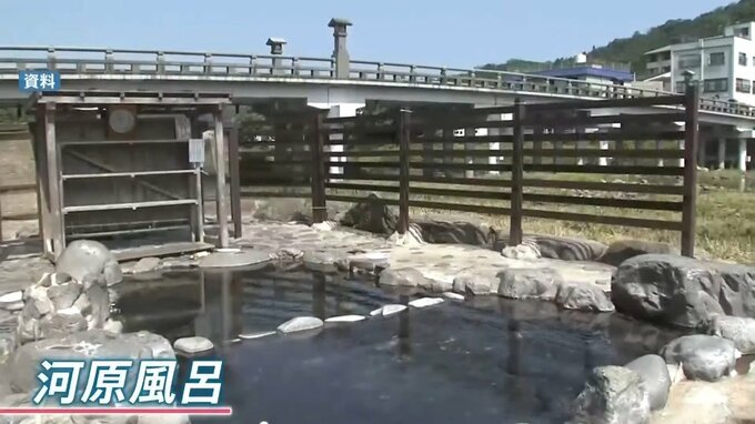 三朝温泉のシンボルでもある「河原風呂」。観光客に大人気の混浴露天風呂ですが、濁流にのまれてしまいました。